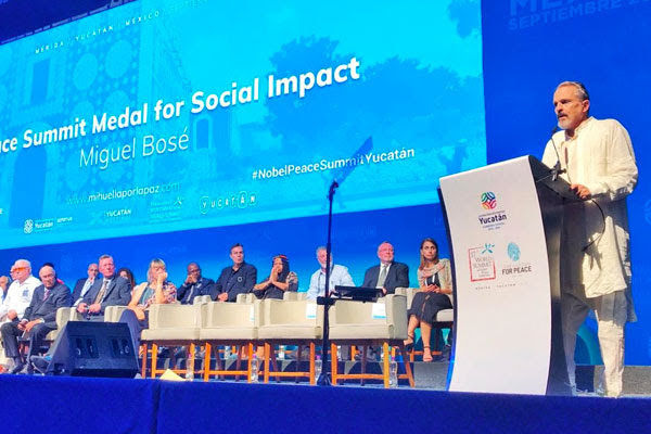 Miguel Bosé, el artista español de mayor repercusión a nivel mundial, fue condecorado con la Peace Summit Medal For Social Impact (Medalla de la Cumbre por la Paz por Impacto Social), por su gran aporte humanitario, su constante trabajo como defensor de la naturaleza, los océanos, la preservación de la raza indígena y la incansable lucha por encontrar la vacuna del SIDA, entre otras causas, durante la Cumbre Mundial de Premios Nobel de la Paz, que se realizó en Mérida, Yucatán, entre el 19 y 22 de septiembre.